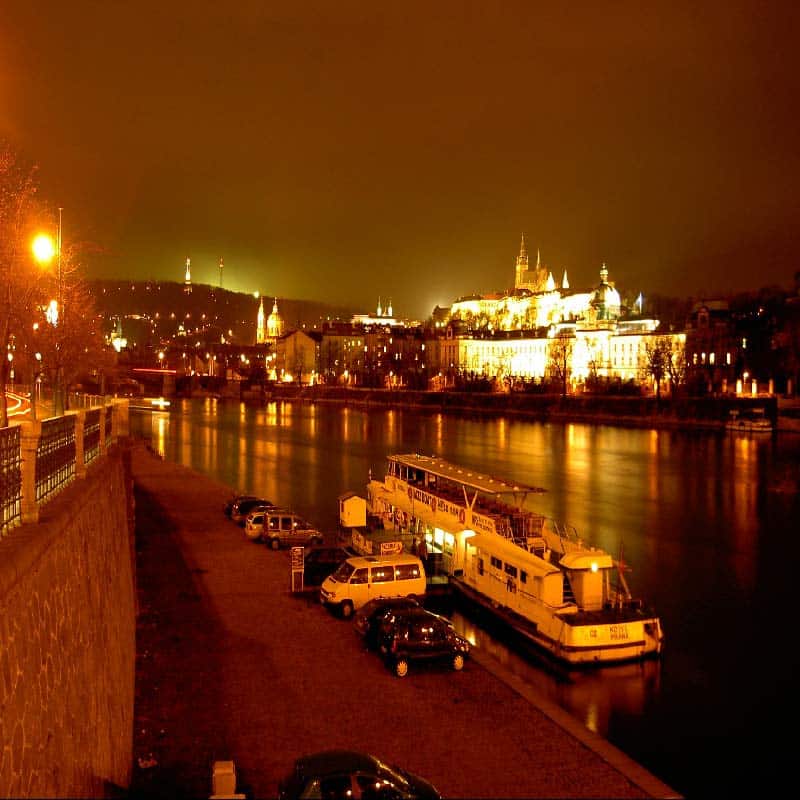 This evening cruise along the Vltava River with dinner and a short bus sightseeing tour is a perfect choice for an evening off in Prague. During the short drive through the city centre in an air-conditioned bus, you will be shown the most beautiful places in historic Prague. After being driven to the boat, you’ll spend three hours there admiring Prague by Night. While passing illuminated monuments like Charles Bridge, the Dancing House or the National Theatre you can enjoy a hot and cold buffet and a good atmosphere with live music on board.